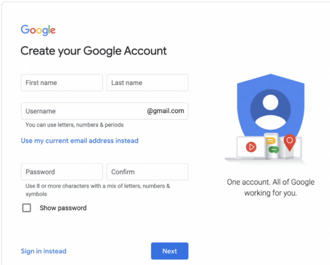 Before you can create a Google Business Profile, you’ll need to create/sign into a Google Account. Visit accounts.google.com and choose ‘Create an account’. If you already have an account, choose ‘Sign in instead.'