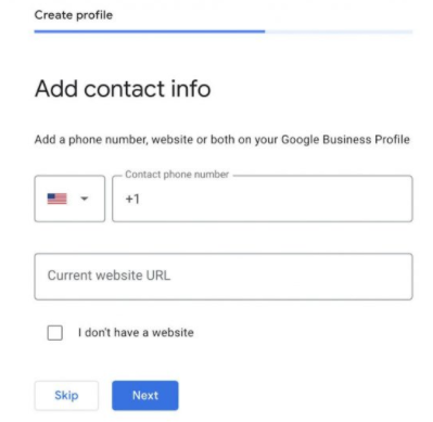 The next step is to add the contact details for the business. You’ll need to enter the phone number, and you also have the option to add the business website.