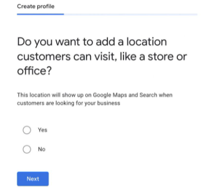 If the business has a physical location that customers can visit for face-to-face interactions, then you’ll now need to share this information. If this is the case, then select ‘Yes’ and click ‘Next’. If the business only operates online, or has a physical location but doesn’t receive customers in person, then select ‘No’ instead.