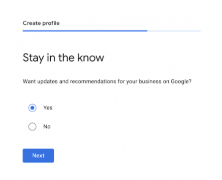 Before you move on to verifying the business, you’ll be asked if you’d like to receive helpful tips and recommendations from Google. Although there’s no obligation, you might find it beneficial to receive this information.