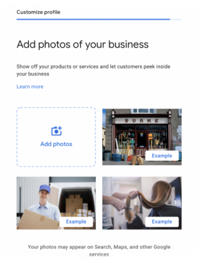 Adding photos is a great way to help searchers visualize the business and to get a glimpse of the brand. Customers can add their own photos to the listing, and some people will choose to do this when leaving you a Google review.