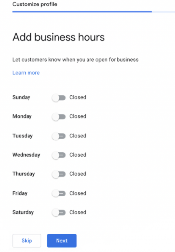 Adding your business hours is essential so that potential customers know when they can visit or contact you.